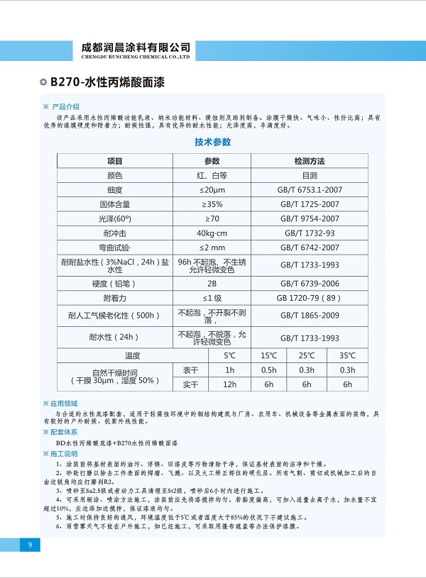 簡介—— 該產(chǎn)品采用水性丙烯酸功能乳液、納米功能材料、緩蝕劑及助劑制備。涂膜干燥快、氣味小、性價(jià)比高;具有良好的漆膜硬度和附著力;