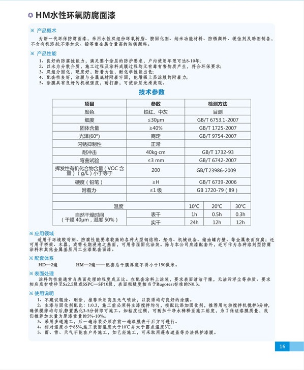 簡(jiǎn)介—— 為新一代環(huán)保防腐面漆,采用水性雙組份環(huán)氧樹(shù)脂、膠固化劑、納米功能材料、防銹顏料、緩蝕劑及助劑制備,不含有機(jī)溶劑;不添加汞