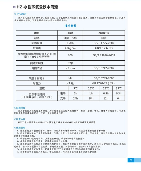簡(jiǎn)介—— 該產(chǎn)品采用水性環(huán)氧樹(shù)脂、胺固化劑、云母氧化鐵及相關(guān)助劑制備而成。涂膜具有較高的耐鹽霧性能,產(chǎn)品具有較高的封閉性,可有效阻