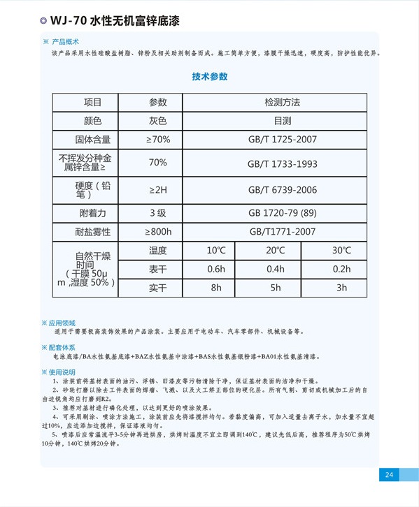 簡介—— 該產(chǎn)品采用水性硅酸鹽樹脂、鋅粉及相關(guān)助劑制備而成。施工簡單方便,漆膜干燥迅速,硬度高,防護(hù)性能優(yōu)異。