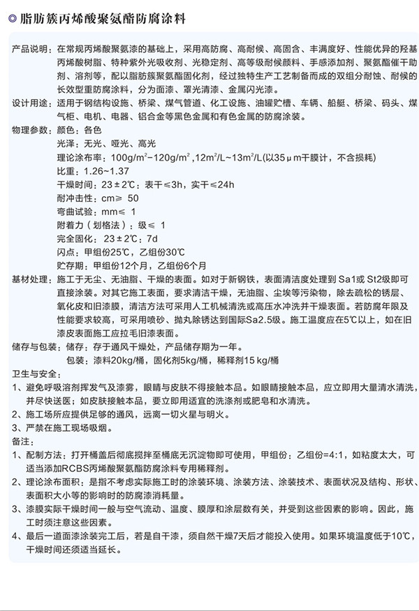 簡介—— 產(chǎn)品說明:在常規(guī)丙烯酸聚氨漆的基礎(chǔ)上,采用高防腐、高耐候、高固含、豐滿度好、性能優(yōu)異的羥基丙烯酸樹脂、特種紫外光吸收劑、