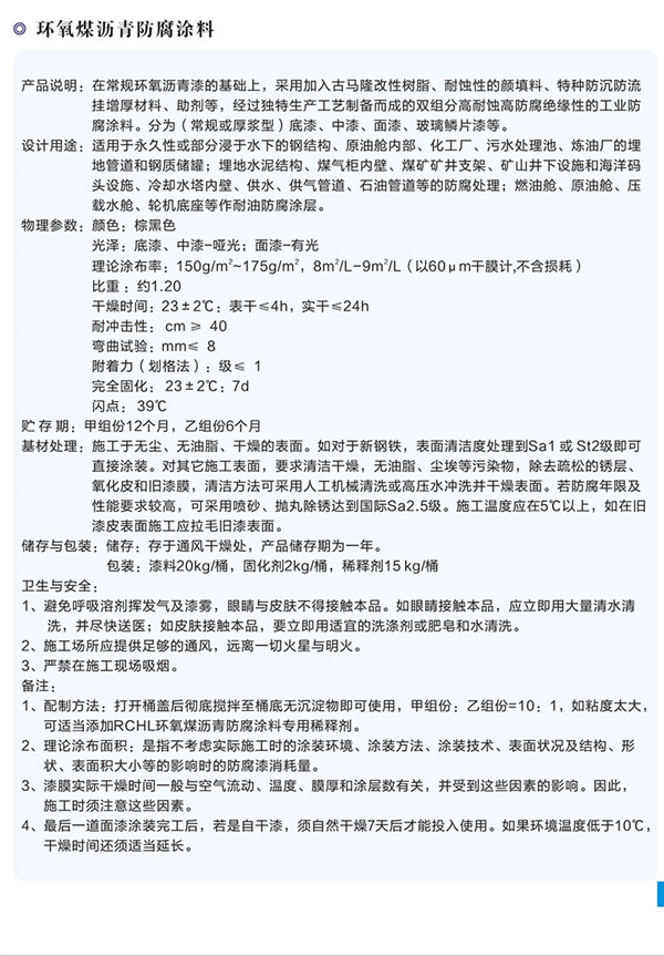 簡介—— 產(chǎn)品說明:在常規(guī)環(huán)氧瀝青漆的基礎(chǔ)上,采用加入古馬隆改性樹脂、耐蝕性的顏填料、特種防沉防流掛增厚材料、助劑等,經(jīng)過獨(dú)特生產(chǎn)