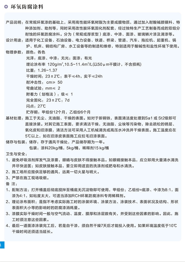 簡(jiǎn)介—— 產(chǎn)品說(shuō)明:在常規(guī)環(huán)氧漆的基礎(chǔ)上,采用高性能環(huán)氧樹脂為主要成膜物質(zhì),通過(guò)加入耐酸堿顏鎮(zhèn)料、特種添加劑、助劑等,同時(shí)采用改性