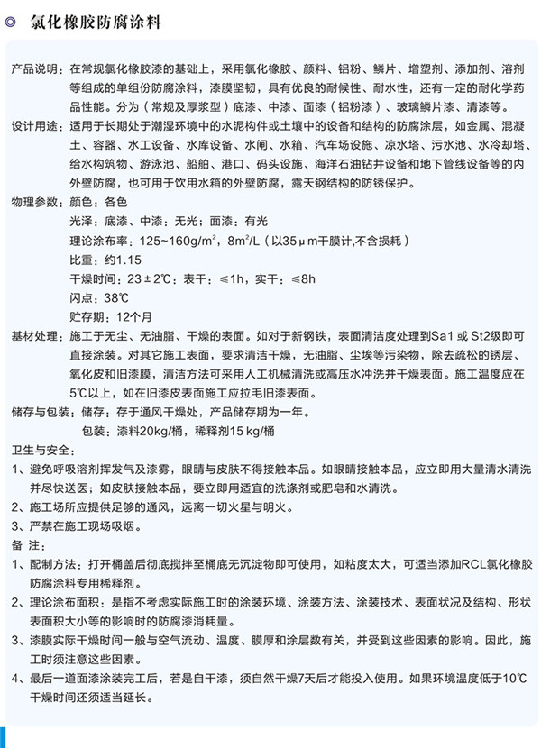 簡介—— 產(chǎn)品說明:在常規(guī)氯化橡膠漆的基礎(chǔ)上,采用氯化橡膠、顏料、鋁粉、鱗片、增塑劑、添加劑、溶劑等組成的單組份防腐涂料,漆膜堅韌
